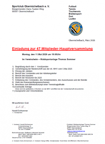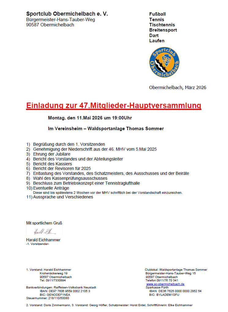 Einladung zur Mitglieder-Hauptversammlung 2026