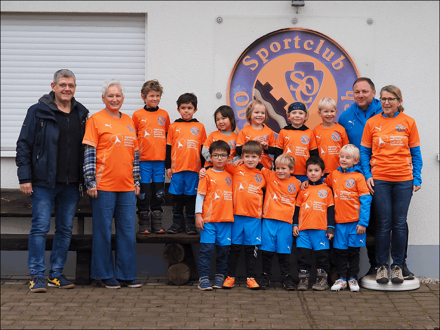 Das Algesiologikum MVZ in Fürth stattete die G-Jugend in den Vereinsfarben orange/blau aus.