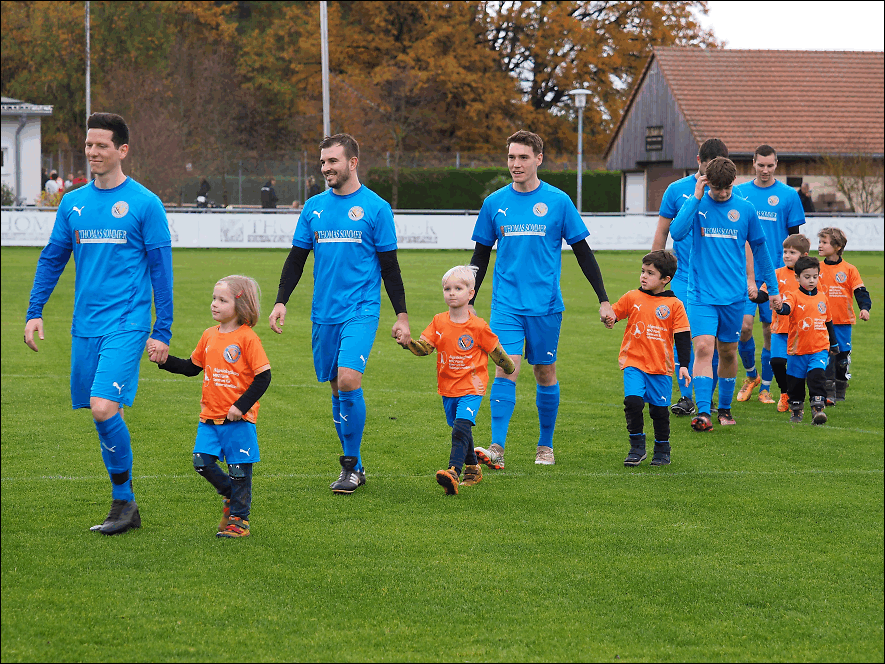 durften die kleinen Sportler, Hand in Hand mit der ersten Mannschaft auf das Spielfeld einlaufen.